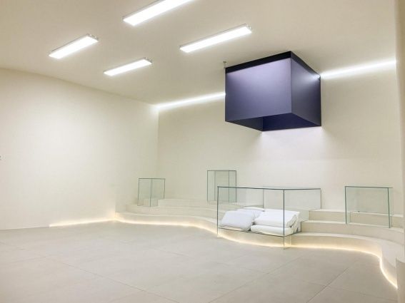 品牌视觉蓝色是场馆内最为点睛的一笔,突破空间原有的风格带来的限制和约束,也展示栖作的个性。