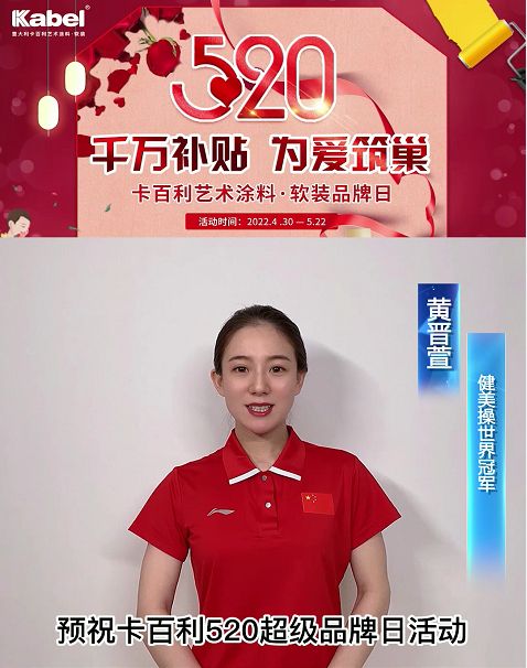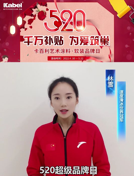 近日,卡百利艺术涂料“520超级品牌日”活动火爆开启,而在活动进行过程中,卡百利总部也收获了多份重磅惊喜。健美操世界冠军黄晋萱、速度滑冰世界冠军林雪专程为本次卡百利520超级品牌日活动录制了一段祝福视频,为活动助力!