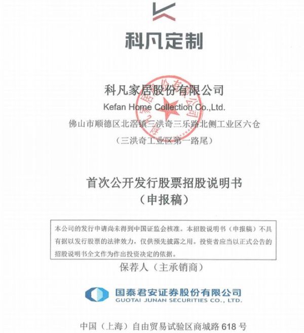 5月9日,证监会官网披露了科凡家居股份有限公司(以下简称“科凡家居”或公司)首次公开发行股票招股说明书(申报稿),公司IPO材料被正式受理。
