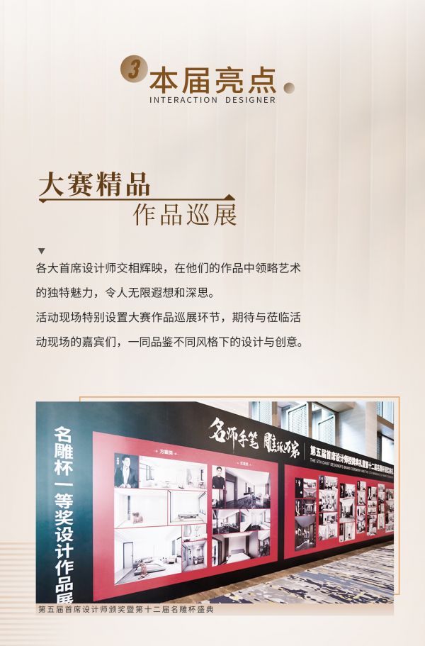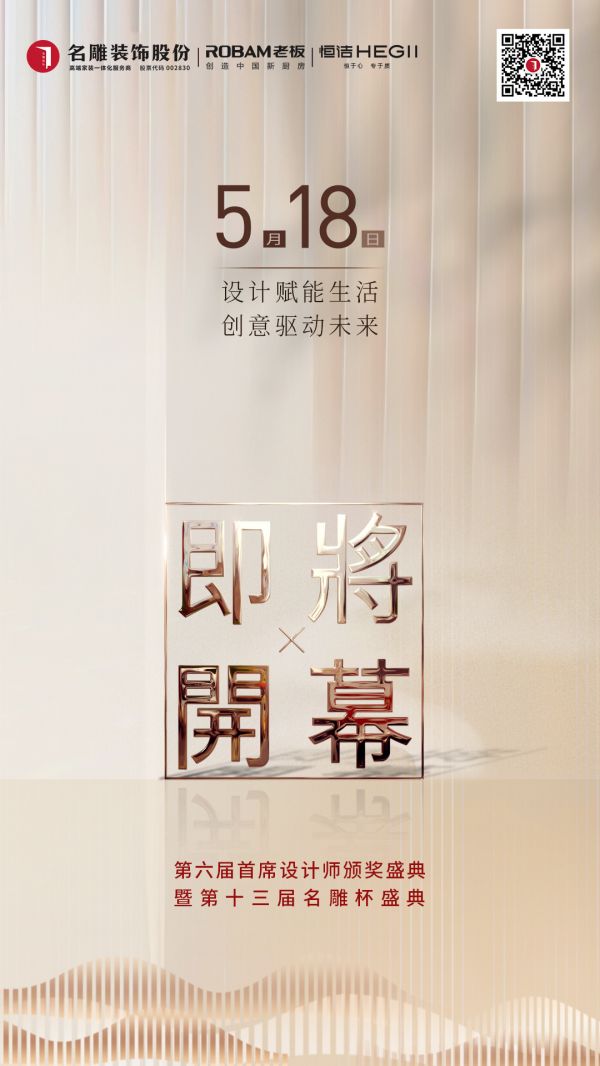 设计让美好生活升级,名雕第六届首席设计师授牌盛典暨第十三届名雕杯颁奖典礼即将开幕。
