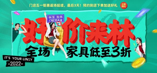 在刚刚过去的五一黄金周,受到国内疫情影响,国内旅游出行人数同比减少30%,国内旅游收入同比减少42.9%。一面是低迷的旅游消费市场,另一面却是家具品牌此起彼伏的促销活动,提振带领家居消费板块,让整个市场热度不减。作为家具赛道头部品牌,在这个“五一”,林氏木业再次精准洞察了年轻用户的需求,独辟蹊径,联动线上及线下渠道开展“好价钱在放假前”、“好价来林”等现象级的营销活动,交出了一份优异的“放价”成绩单,逆势掀起了家具消费的热潮。