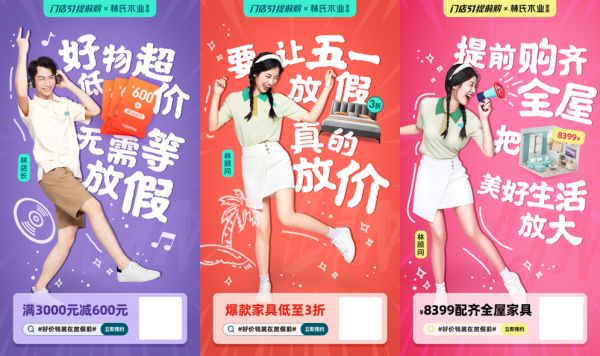 林氏木业清楚地知道提前完成自身大促流量“蓄水池”构建只是成功的基础,让用户在假期期间到店实现转化才是五一大促的成功关键。为此,林氏木业通过全域全渠道集中强势营销爆破,广告投放超10余种媒介渠道,覆盖全国182座城市,以极具品牌调性的“放价”高频素材导入,花式种草品牌爆款好物,并借助线上大数据精准引流裂变,强化消费认知,实现了最大化撬动线下流量。
