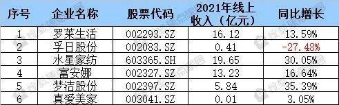 梦洁股份线上销售对总营收的贡献,也由2020年的19.43%上升至2021年的23.71%。真爱美家的线上销售表现平平,线上销售占总营业收入的比重保持不变。