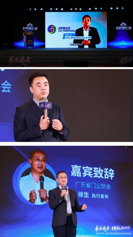 会上,远在首都的全国工商联家具装饰业商会秘书长张仁江通过大屏幕为本次活动致辞,另外,广东省定制家居协会秘书长曾勇、广东省门业协会执行会长徐生在活动现场分别致辞。