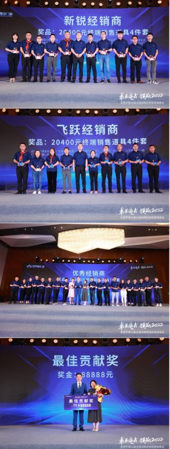 其中,四川泸州崔莲获得最佳贡献奖,另外,数十名经销商获得优秀经销商、飞跃经销商、新锐经销商等称号,并获得企业颁发的丰富奖金和奖品。企业的大方行径,让现场观众为圣堡罗点赞。同时,也激励经销商跟紧企业前进的脚步,再创辉煌。