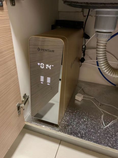 这款滨特尔8000-a 型净水器的颜值同样不容忽视。镜面和金色的搭配为整体机身带来了金属般坚实可靠的质感,同时清晰可见的TDS数值以及滤芯进度条,也能带来令人放心的交互体验。正面采用大面积银色镜面屏,配合和X造型的状态显示灯,轻冷科技风的路线,更显其高端。