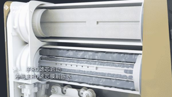 在传统家用净水器的使用过程中,当净水器处于静置状态时,RO膜进水侧的浓水会渗透通过进入纯水侧,静置时间越长,水中的钙镁等离子含量也会越高,从而形成陈水。当净水机再次启动时,用户饮下的第一杯水,TDS值会很高,十分影响饮用口感。
