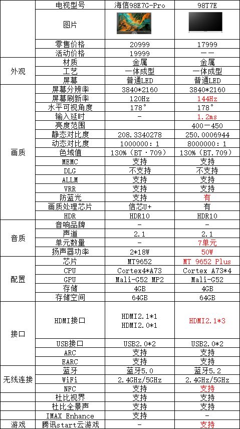谁才是最佳选择?TCL 98T7E&海信98E7G Pro参数大对比