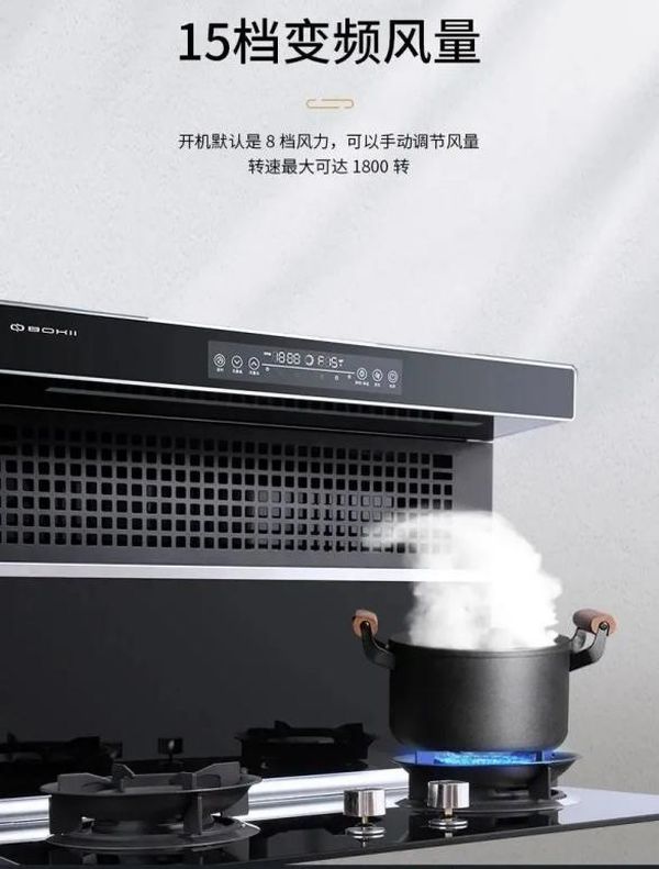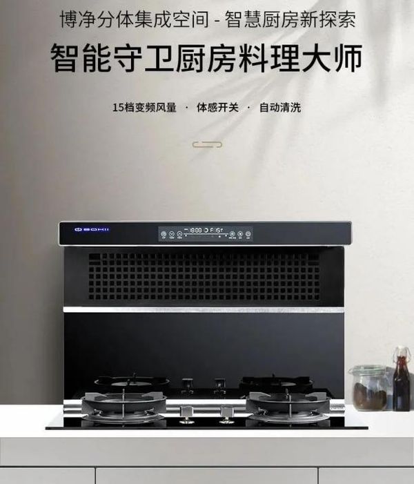 博净分体式集成灶的油烟吸净率高达99.6%以上,比传统油烟机更能吸油烟。因为它采用的低位侧吸的吸油烟方式,在黄金拢烟区就将油烟吸走。不仅吸油烟率显著提升,并且油烟不会扩散、升腾,不经过人脸,对人体更健康,还能避免伤害女人娇颜。