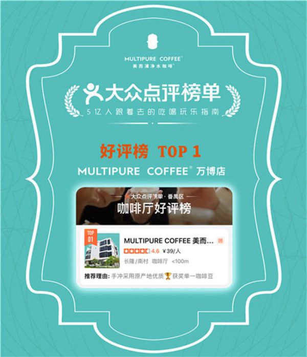 2021年9月29日,MULTIPURE COFFEE全国首店在广州番禺正式开业。短短几个月便登上了番禺区大众点评好评榜、口味榜、环境榜、服务榜四大榜首,卫冕至今。