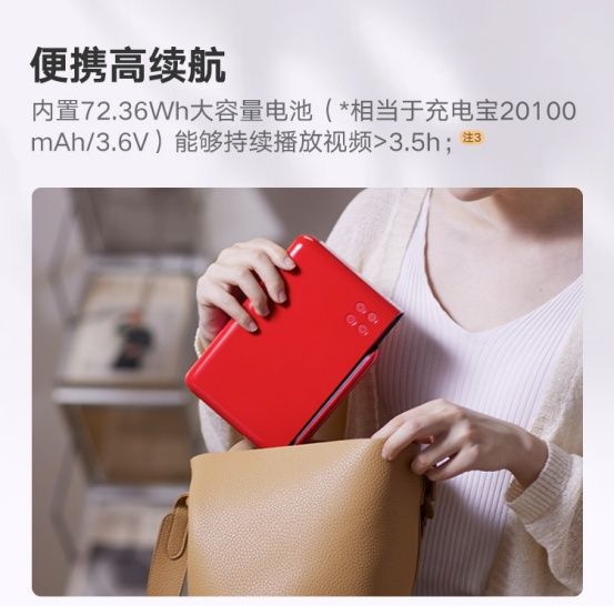 作为一款便携投影仪,除了居家观影,还会经常在外出旅行、户外野营等场景使用,为了满足用户的长续航需要,官方为天猫精灵小红盒Pro搭载了18000mAh的超大电池容量,只用电池进行播放,在50%的光机亮度下,能够坚持三个半小时以上的使用时长,看两部电影绝对没问题。