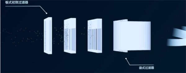 四级过滤系统,通过初效过滤、2级静电除尘、中效过滤能有效过滤室外新风空气中的PM2.5及污染物,PM2.5过滤效率≥90%,即使室外是重度的雾霾天,在家居内依旧可以畅快呼吸。