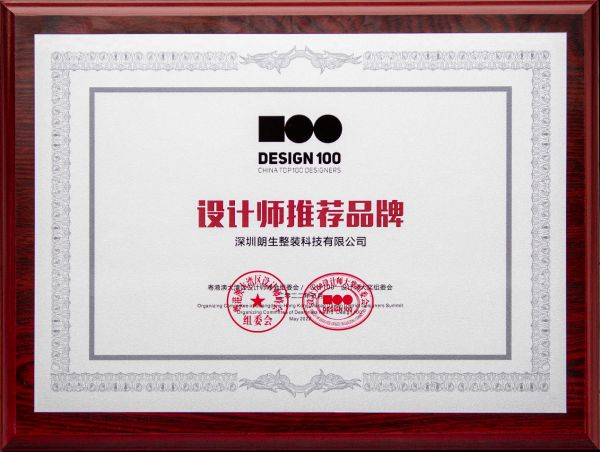 深圳朗生整装科技有限公司获2022“设计 100”设计师推荐品牌奖