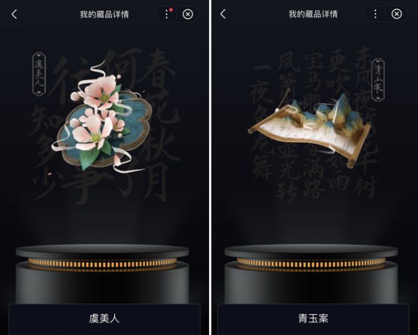 4月29日,人民创意在百度APP首次发布了“汴京十二时辰”两款词牌场景数字藏品“虞美人”与“青玉案”, 把水墨画转换为三维立体动图,引发数万名文化爱好者的收藏热捧,与全民共享具有雅韵之美的3D艺术藏品,将宋代文化美学元素进行延传、激活与重组,正如媒体评价所言,“汴京十二时辰3D数字藏品,成为千年古都的繁华光辉融入新时代的良方”。