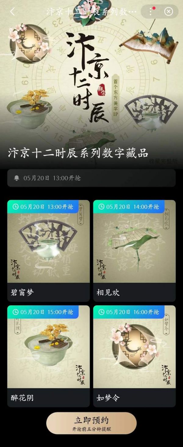 5月20日,“汴京十二时辰”之“碧窗梦”“相见欢”“醉花阴”“如梦令”四组词牌场景,将于下午13:00依次发布,每1小时发布一组,发布顺序为:碧窗梦、相见欢、醉花阴、如梦令。每组限量发售2000份。用户可在百度APP搜索“汴京十二时辰”直达数字藏品页面进行收藏购买,此次发售仅针对安卓系统手机用户开放。