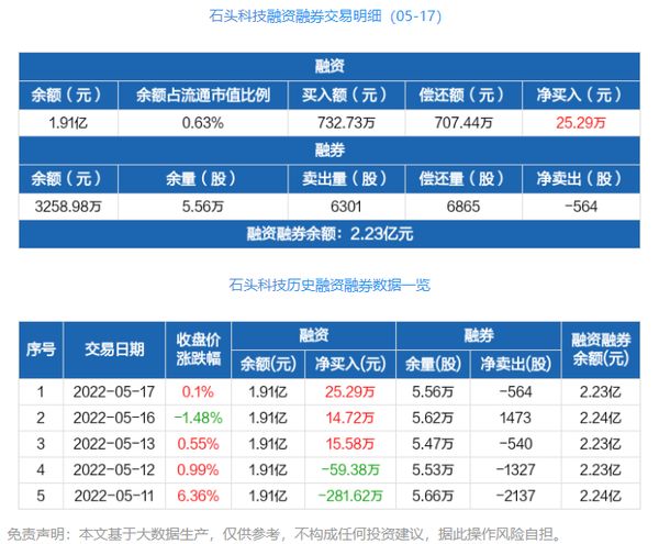 新浪家居智能家居频道讯 石头科技融资融券信息显示,2022年5月17日融资净买入25.29万元;融资余额1.91亿元,较前一日下降0.19%。