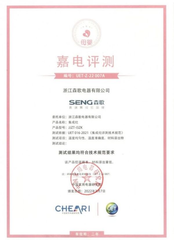 目前市面上的集成灶大多都是蒸烤箱款、消毒柜款,蒸烤消一体式设计并不常见。而像i3蒸烤消一体集成灶这样可以做到获得中国家用电器研究院《集成灶评测技术规范》、《母婴家电技术规范》认证,完全符合母婴消毒要求的产品更是少之又少。