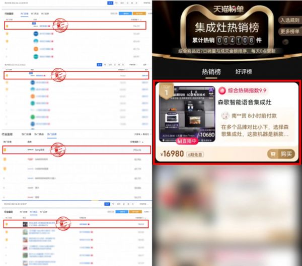 事实证明,森歌i3蒸烤消一体集成灶的推出很好地满足了消费者对健康厨房的需求,迅速成为厨电新宠。森歌i3在4月22日森歌超级品牌日首发当天就获得了5榜第一的优秀成绩。成功通过销量表现证明了母婴消毒健康厨电产品在消费者心目中的欢迎程度。