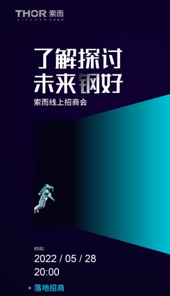 为了满足广大消费者一站式家装需求,专注于不锈钢橱柜与厨电一体化定制的生态厨房服务商、百年厨房品牌、头部高端定制家居品牌THOR索而特别开启了新一轮线上招商:2022年5月18日-5月28日,“了解探讨 索而钢好”索而线上招商会即将与广大经销商见面,为广大经销商带来全新的财富机遇。