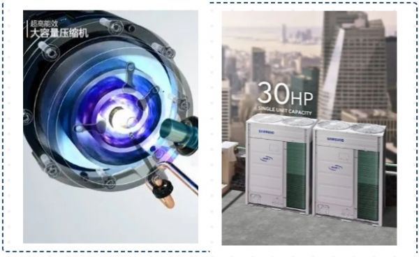 面对庞大的中央空调使用需求,三星中央空调为项目配备总规模2390HP的产品,以坚实技术实力,助力园区发展。三星中央空调高压腔气液增焓涡旋式变频直流压缩机采用线性变壁厚涡旋盘设计,增加吸气空间,吸入更多冷媒同时增强排气部位的强度保持系统稳定,提升排气量,有了它的加持,整个空调系统具备稳定可靠、高效节能等多项特点,可应用于机场、轨道交通、酒店、商业等多种建筑领域。强劲的制热功能,一直都是三星中央空调的性能亮点,经过技术不断的升级,推出高效的气液增焓技术。