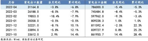 但进入一季度,受国际环境、海外高通胀等影响,主要家电企业增幅承压。比如北美家电龙头惠而浦收入下降8%,利润下降32%;欧洲家电龙头伊莱克斯收入下降3.3%,利润下降31%。受此影响,同时叠加疫情、物流、供应链等挑战,国内家电出口持续负增长,主要家电企业增速承压。