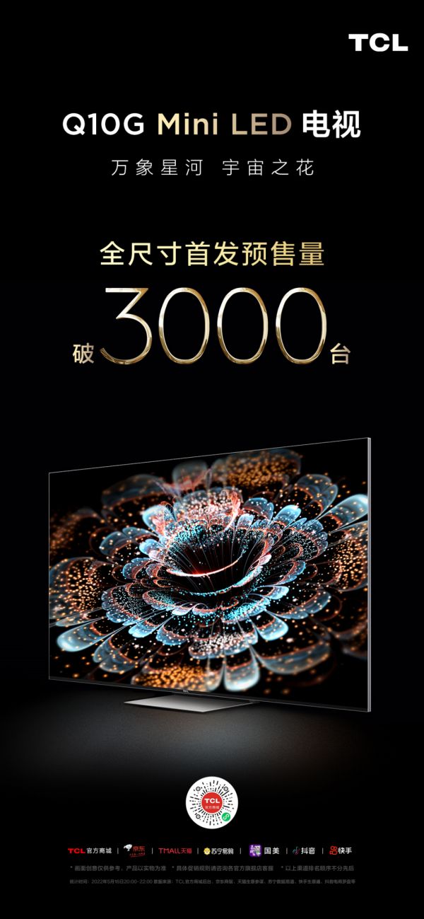 电视越来越高端的同时,技术也在不断革新,各种显示技术也是百花齐放。其中,Mini LED凭借着高对比度、高亮度、寿命长等特点受到了许多厂商的青睐,使得Mini LED成为了如今电视市场的主流显示技术。就比如作为全球电视销量中国第一的品牌TCL,在5月16日就推出的这款新品电视——TCL万象星河·Q10G Mini LED电视,全系列共有4个尺寸(55/65/75/85),其中85英寸新品首发价12999元,75英寸新品首发价8499元,65英寸新品首发价6499元,55英寸新品首发价更是仅需4499元。同时,其首发仅两小时全网全尺寸的预售量就突破了3000台,可谓极受消费者的喜爱!