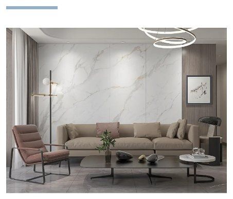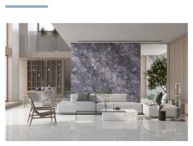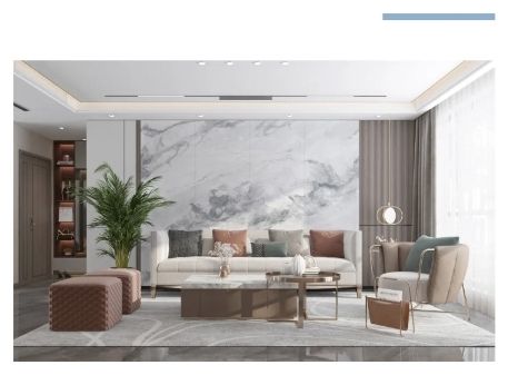 800x2600mm、1600x2700mm等大规格岩板能刚好匹配墙面高度,作为背景墙用在电视、玄关、沙发背景、护墙等位置,无需额外加工切割,减少建材的损耗以及加工成本。