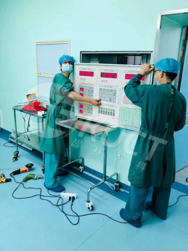 东莞康华医院项目属于改造项目。赛科的人员需要去到现场先把旧的面板拆下,安装上我们的产品,再根据现场条件布线调试,使产品与手术室的配套设备能呼应联动。
