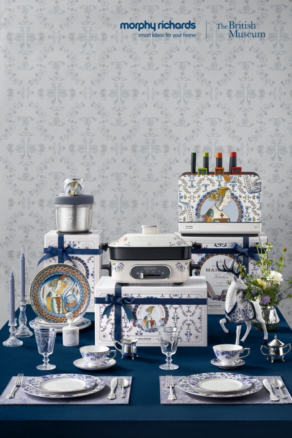 此次「英国摩飞x大英博物馆」联名艺术新品,以文艺复兴和餐桌美学交叠,欧洲贵族餐桌瓷器——马约里卡陶盘为线索,展开「食艺复兴」的主题创作,选用摩飞三款经典厨电:摩飞刀具砧板消毒机、摩飞多功能锅、摩飞套娃绞肉机,通过结构重组的方式重新设计亮相,绽放智美精致的艺术“家”空间。
