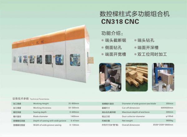 佛山市川江机械生产的樑柱式木结构加工中心设备在江苏国林木业正在使用,此设备结合了以往设备的开槽、钻孔一体式加工特点再增加了以下功能: