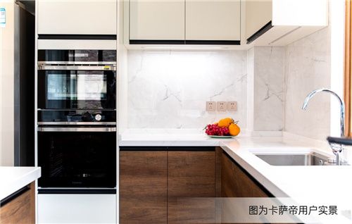 “他们的改造方案很专业,不只是要定下电器怎么装,连橱柜怎么设计、台面用什么工艺、墙面瓷砖怎么改都考虑到了,整体设计图出来后跟我家的装修风格也很搭。”林女士评价说。林女士家采取的是“现代+美式”的装修风格,橱柜风格必须与整体风格协调统一。卡萨帝服务人员经过多余设计拆除、厨房空间改造、全套厨电安装等几个步骤,为林女士打造出了美观和实用性兼备的理想厨房。而林女士表示,除了前期敲定设计方案,整个改造过程自己再也没费过心。