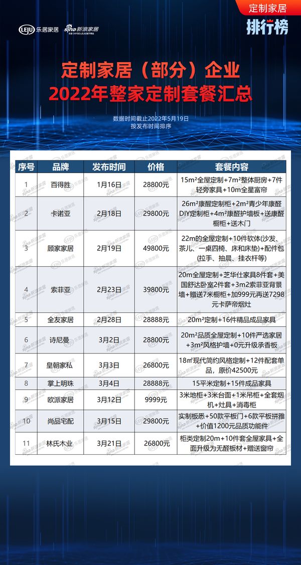 定制风云榜 | 部分定制家居企业2022年整家定制套餐汇总