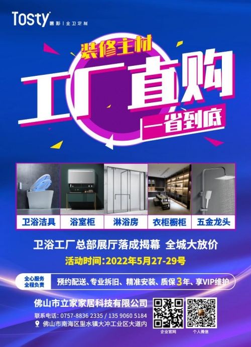 2022年5月28日, 「正青春 · 浴未来」唐彩全卫定制18周年庆暨工厂总部展厅揭幕仪式将在佛山举行。2022年,唐彩全卫定制聚焦“高端、定制、空间”,将极致美学与卫浴空间,以高标准、高调性、新体验为核心,迭代产品体系,全新升级总部展厅,尽显品牌非凡魄力!本次大会上,唐彩全卫定制总经理李林明先生,及行业大咖、经销商代表、合作伙伴,媒体嘉宾、朋友等,将共聚唐彩总部,一同见证品牌的高光时刻。