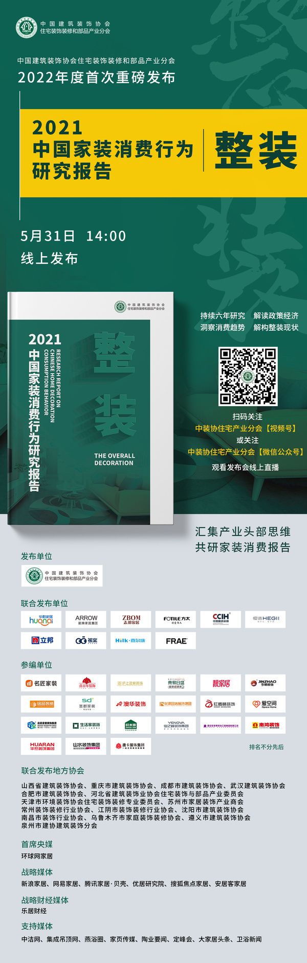 本次线上发布会,将在中装协住宅产业分会官方视频号面向全产业全社会直播,协同15个地方行业协会、10家联合发布单位联合发布。