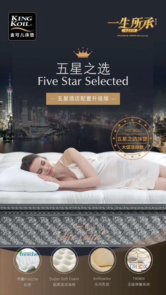 五星经典,金质呈现。2000年进入中国市场,金可儿在生产设备、原材料选用、生产标控及质检标准上,以高标准、高质量、高服务来力求每一件产品都令用户拥有满意的购买和使用体验。正因如此,金可儿的产品得到众多酒店客户的青睐,仅在中国就有超过1000多家高端酒店合作伙伴,为无数宾客提供全球一致的优质健康睡眠体验。