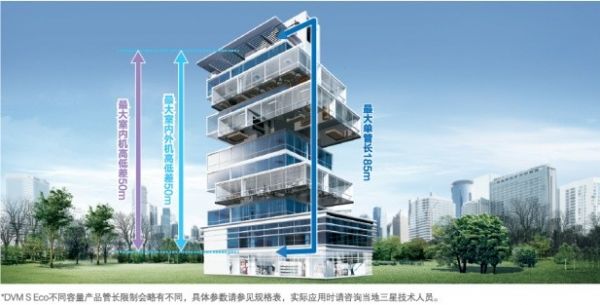 三星侧出风变频多联机管长自由度高,灵活对应多样的楼体设计,在安装上,同样可以满足不同需求。