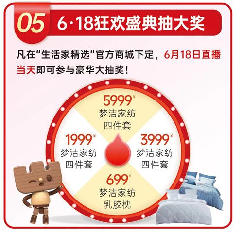 凡在“生活家精选”官方商城下定成功的用户,6月18日直播当天即可参与豪华大抽奖,价值5999元、3999元、1999元等心动大奖,记得提前锁定!还有直播互动精美礼品,不容错过!
