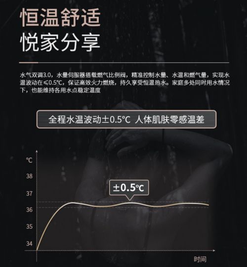 同时,飞利浦在解决出水忽冷忽热的问题上也下足了功夫,水气双调技术已经升级到了3.0版本,水量伺服器搭载燃气比例阀,经过机器大脑的智能计算,精准控制水量、水温和燃气量的动态平衡,水温波动始终控制在0.5℃以内,即使在家庭多处同时用水情况下,也能维持各用水点温度的恒定。