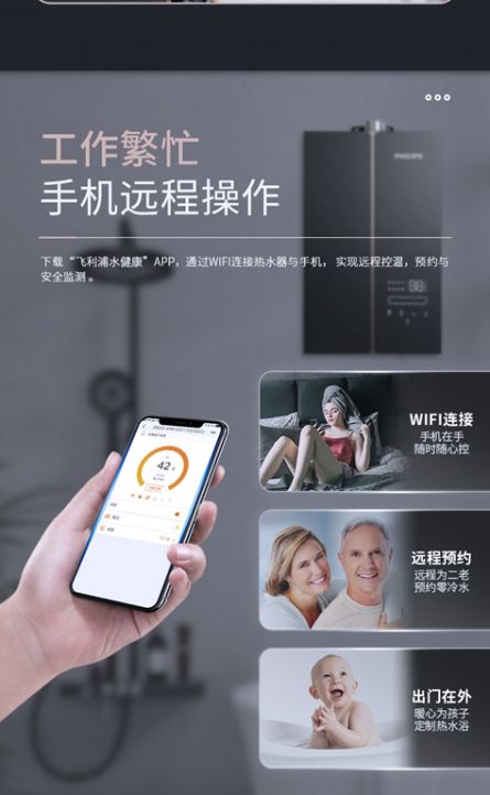 在热水器行业,零冷水早已经不是高科技了。不过飞利浦这款产品在保证你可以随时随地享受热水的基础上进行了更为人性化的升级。