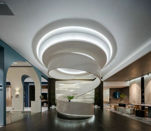 曲面陶瓷岩板项目,研发出一种大规格、高强度等性能优异的曲面陶瓷板材,实现了大规格陶瓷板材的优质化生产及曲面配套技术的应用,项目技术达“国际先进”水平。项目产品可完成圆柱、穹顶、弧形转角等多种形式组合,且任意弯曲造型均可实现连纹设计,为空间美学设计提供了无限可能。