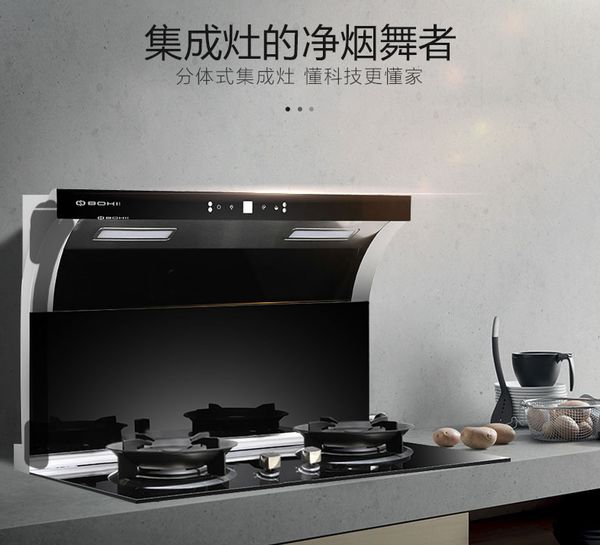 1.博净分体式集成灶的吸油率比抽油烟机高,排烟效果更彻底