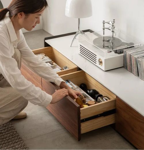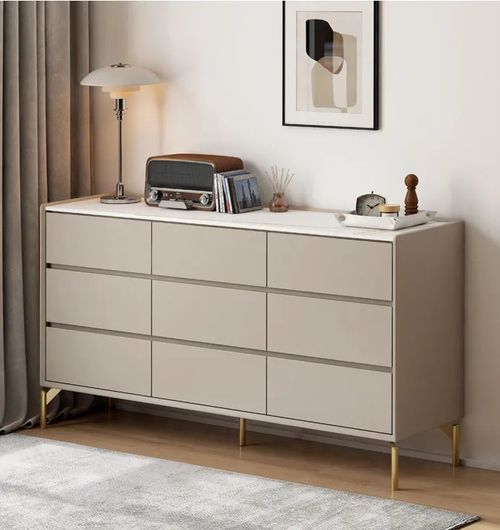 低饱和度媞诺·斗柜,北美进口鹅掌楸+劳伦白金岩板,加以黄铜金属脚点缀,如落落大方的姑娘,高颜值收纳能手,九抽设计,分区储物,宽敞桌面竟然还可以做电视柜使用呢!