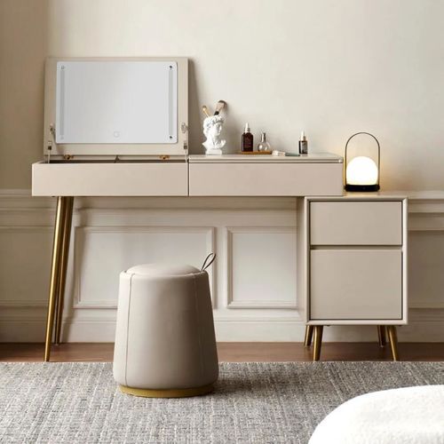 柔和的意式米灰,搭配金属质感的化妆桌,轻奢有气质,妆镜够大,镜面带LED灯,照亮热爱生活与美妆的你。爱美轻奢范即刻体现,还可以伸缩哦,精准匹配你的家!