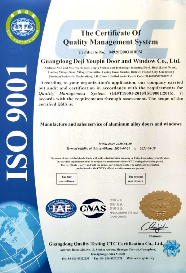 德技优品与德国进口品牌维哈根、南华铝材、信义(XYG)、信高隔热条、瑞易得(RUIYIDE)等优秀供应商达成战略合作协议,先后获得了"欧盟CE认证"、"ISO9001-2015国际质量管理体系认证","澳洲AS2047证书"、美国NFRC认证,构建起完善的质量管理体系。载誉前行,德技优品门窗先后获得了"中国铝合金门窗十大品牌"、"中国铝合金门窗十佳品牌"、“门窗十大质量品牌”、“2021集创新力品牌奖”以及由广东省科学技术厅颁发的高新技术企业,和中国航天航空优秀供应商“天元胶”战略合作伙伴等诸多称号,并连续2年蝉联"中国安全门窗百强",和多个“消费者喜爱十大品牌”的奖项,让品牌在家居行业树立了示范形象,并在市场里获得了广大消费者的一致喜爱。