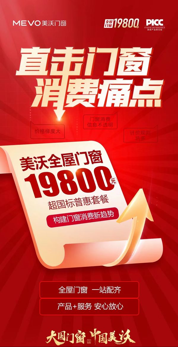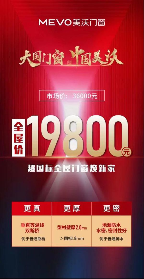 为顺应市场消费升级以及节能环保系统门窗的发展趋势,秉持“让高品质系统门窗走进千家万户”的企业愿景,美沃先行业推出“全屋门窗19800元超国标套餐”,并标配美沃超国标雅典娜110系列系统门窗。
