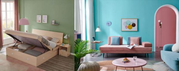小户型的面积有限,在色彩的挑选上,尽量以白色为基础,再用其他明亮的浅色调进行搭配。白色既能百搭其他色系,还能最大限度保证居室的明亮。另外,局部可用重彩加以修饰,但要搭配均匀,确保比例得当。
