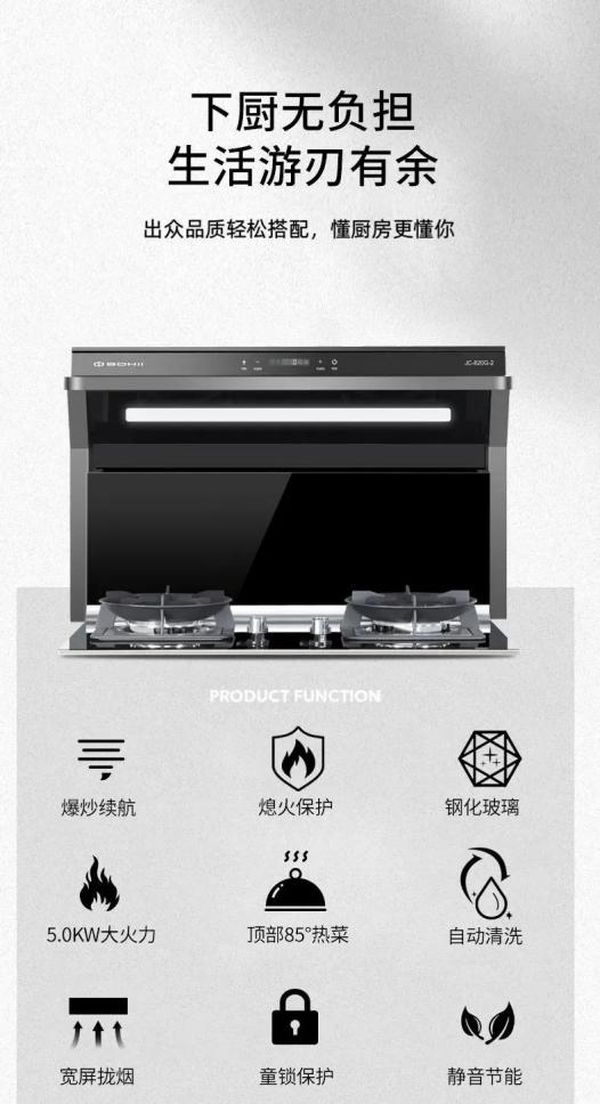博净嵌入式集成灶集多种功能为一体,使用方便。上面煎炒烹炸的同时可以随心搭配蒸箱,内蒸上蒸菜或者点心,省时省力。
