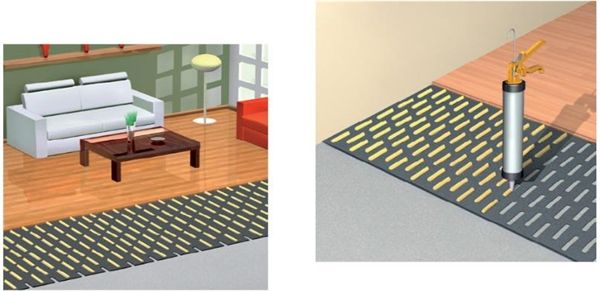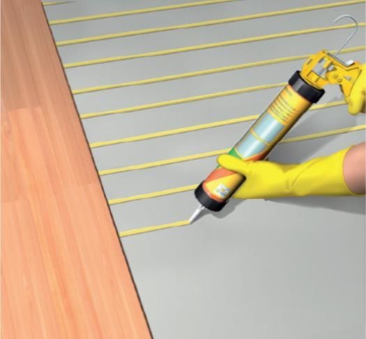 它可用于实木地板、三合板和胶合板条铺型粘接。它的弹性粘结剂可减少木地板与基面的横向应力,减少噪音传递,增加踩踏触感。它用于消音粘接系统,能与消音垫一起达到降低噪音的作用。