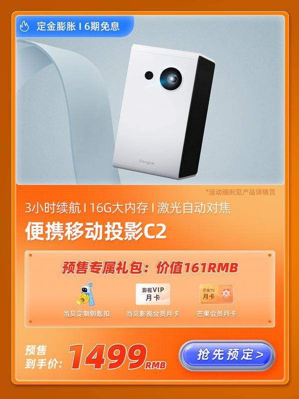 如果你是喜爱露营等一系列户外体验的朋友,这款当贝C2便携小投影你不能错过。不仅仅能播放电影,它还可以当做蓝牙小音箱和充电宝使用,优秀的HiFi音质搭配9600mAh的电池容量,秒变聚会的气氛组!预售期前,前先预定还有当贝专属的周边钥匙扣礼包哦!