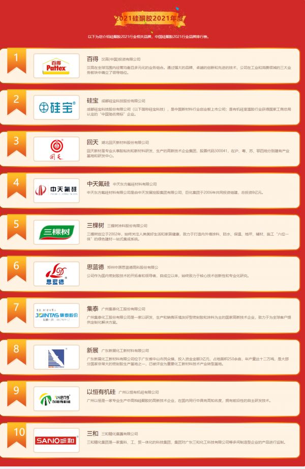 大数据助力行业品牌2021完美蜕变!谁是行业真正的实力派,谁是品牌的TOP10!2021年行业十大品牌硅酮胶行业品牌榜全新出炉!